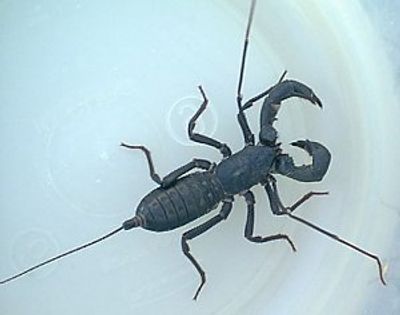 The picture to the right is that of a vinegaroon, also known as a whip scorpion. They are indigenous to the desert southwest and lack the stinger and tail of the scorpion most of us dread. When disturbed, the vinegaroon emits an odor similar to that of vinegar - hence the name. The region where this novel takes place is called Vinegarone. I'm thinking something got lost in the translation over the years.
